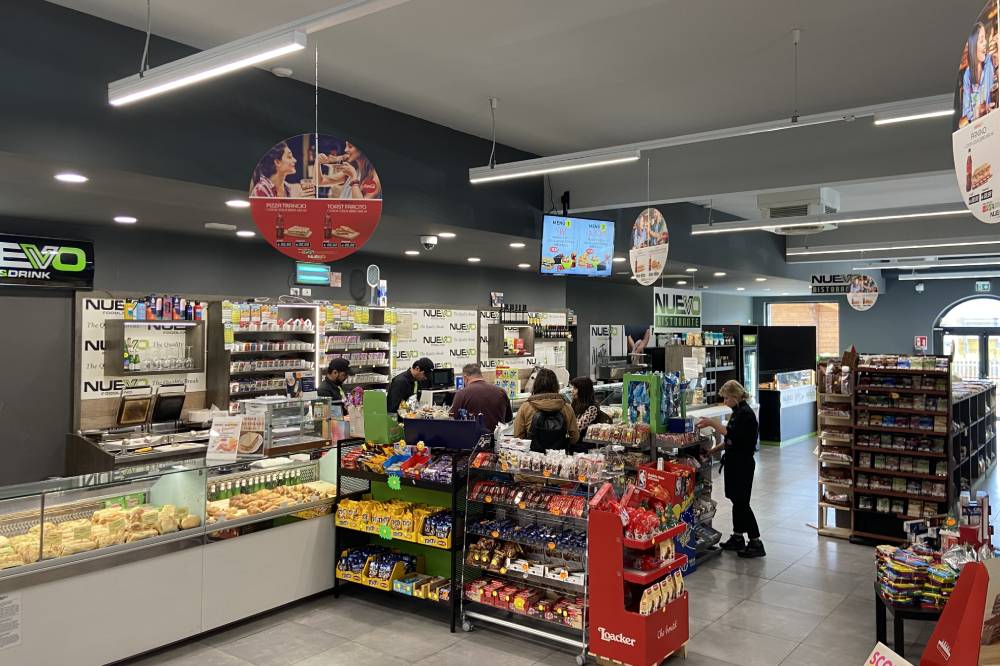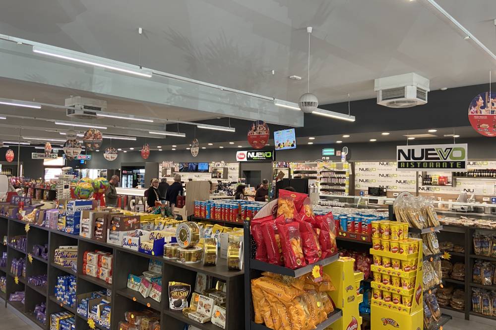 L’offerta comprende un bar caffetteria con specialità locali, un’area ristorazione con piatti caldi e veloci, e un market ben assortito.